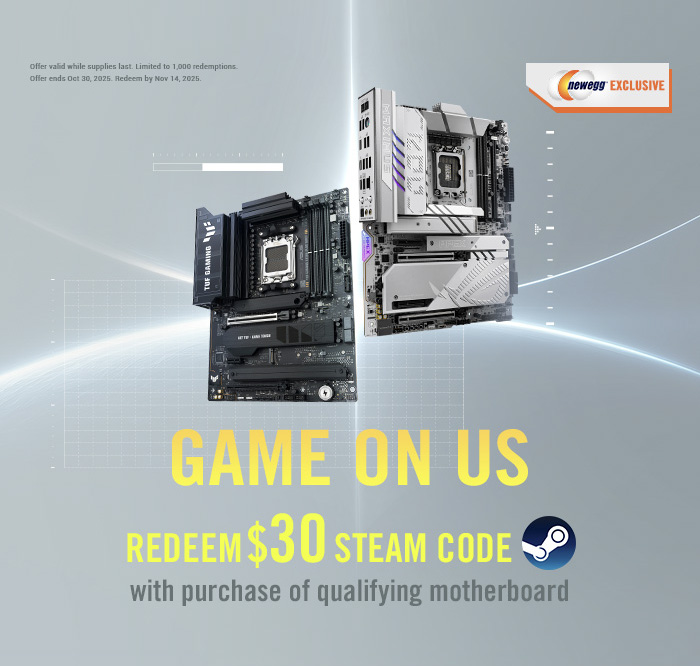 It's just about that time to upgrade your PC and we're partnering with Newegg for an exclusive $30 Steam Code bundle with purchase of qualifying ASUS & ROG motherboards. Offer valid while supplies last from now until October 30th, 2025 (Redeem by November 14th).