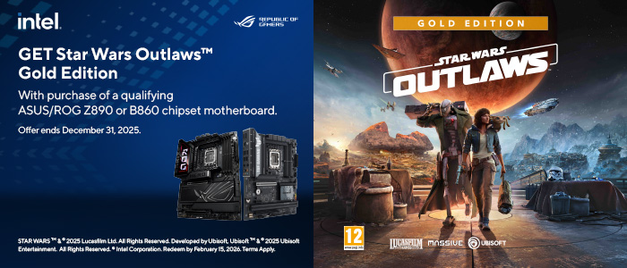 For the Star Wars fanatics, get Star Wars Outlaws Gold Edition with purchase of a qualifying ASUS/ROG Z890 or B860 chipset motherboard. Offer ends December 31, 2025 Terms Apply, for full details see the link below.