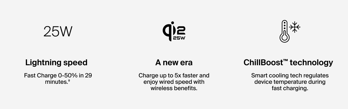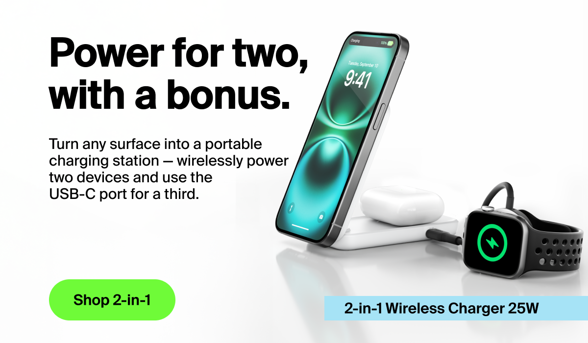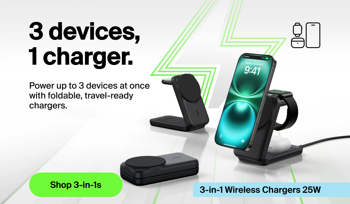 * Based on internal testing. Belkin Qi2 25W wireless technology charges iPhone 16 from 0-50% in 25 minutes using iOS 26 or newer. Chargeâ¯time varies with environmental factors; actual results will vary. ** Free 2 Day Shipping on orders of $125+ and Free Ground Shipping on orders of $75+ is valid in the U.S. only. PLEASE NOTE that Belkin.com will not be responsible for delivery delays due to unforeseen circumstances outside our reasonable control such as delays due to severe weather, natural disasters or strikes. Taxes and prior purchases do not qualify toward the minimum purchase requirement and offer cannot be applied to such items. Offer is good for the order's first "ship-to" address anywhere in the U.S. If you choose another shipping option, additional charges will apply. Oversized or heavy items are not included in this offer. Zip codes in areas considered "BEYOND CHARGE NON-INTERCHANGE POINT" will also be subject to a surcharge. Contact customer service for more details. No adjustments on previous purchases. Offer is non-transferable and subject to change without notice. Not valid on shipments to Canada, Puerto Rico or any other US Territories. |