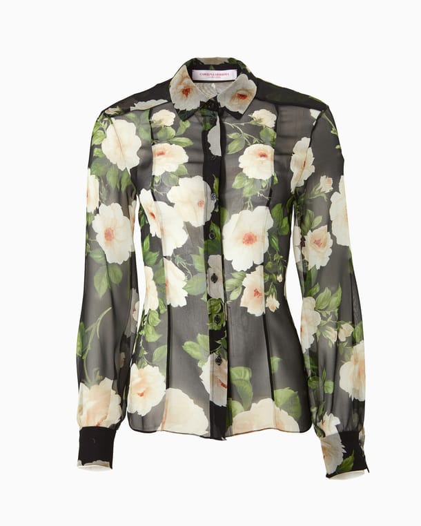 Rose-Print Chiffon Blouse