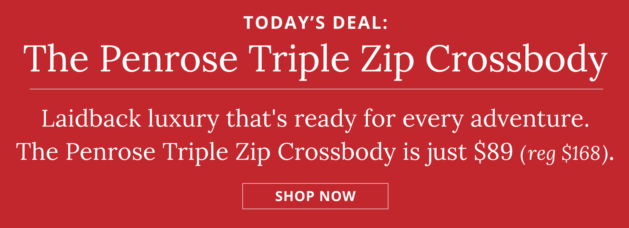 | Today's Deal ends November 13, 2024 at 11:59pm PT. Discount applies to the Penrose Triple Zip Crossbody only. Cannot be combined with other offers. Valid while supplies last. Limited to three items per customer. Not redeemable for cash in part or full. Offer not valid on previously purchased merchandise. Pricing is temporary and subject to change. Due to high demand and limited inventory, orders cannot be guaranteed. Available only at dooney.com. Black Friday offer ends December 1, 2024 at 11:59pm PT. Offer available only on dooney.com with code BLACKFRIDAY, excludes our Black Friday Specials. Discount cannot be applied towards our Dooney App Bag of the Month, Monogram Pendant Collection, Penrose Collection, Quincey Collection, Sorrento Collection, Torino Collection, Sweety Leather Collection, Belmar Collection, Pickleball Collection, Canvas Collection, Tucker Collection, Denison Collection, Lucca Collection, Ruby Collection, Buffy Collection, select styles from our Wexford, Gretta, Saffiano, Pebble Grain, Florentine, Ostrich, Suede, Tartan, Cabriolet, Windsor, DB75 Multi, MLB, NFL and Collegiate collections, Shoes, Phone Cases, Odd and Ends, Luxury for Less: Under $100 styles, In Good Company (Roberta Pieri, and Old Newbury Crafters) brand products. Offer not valid on previously purchased merchandise. Cannot be combined with any other offer. Not redeemable for cash in part or full. |