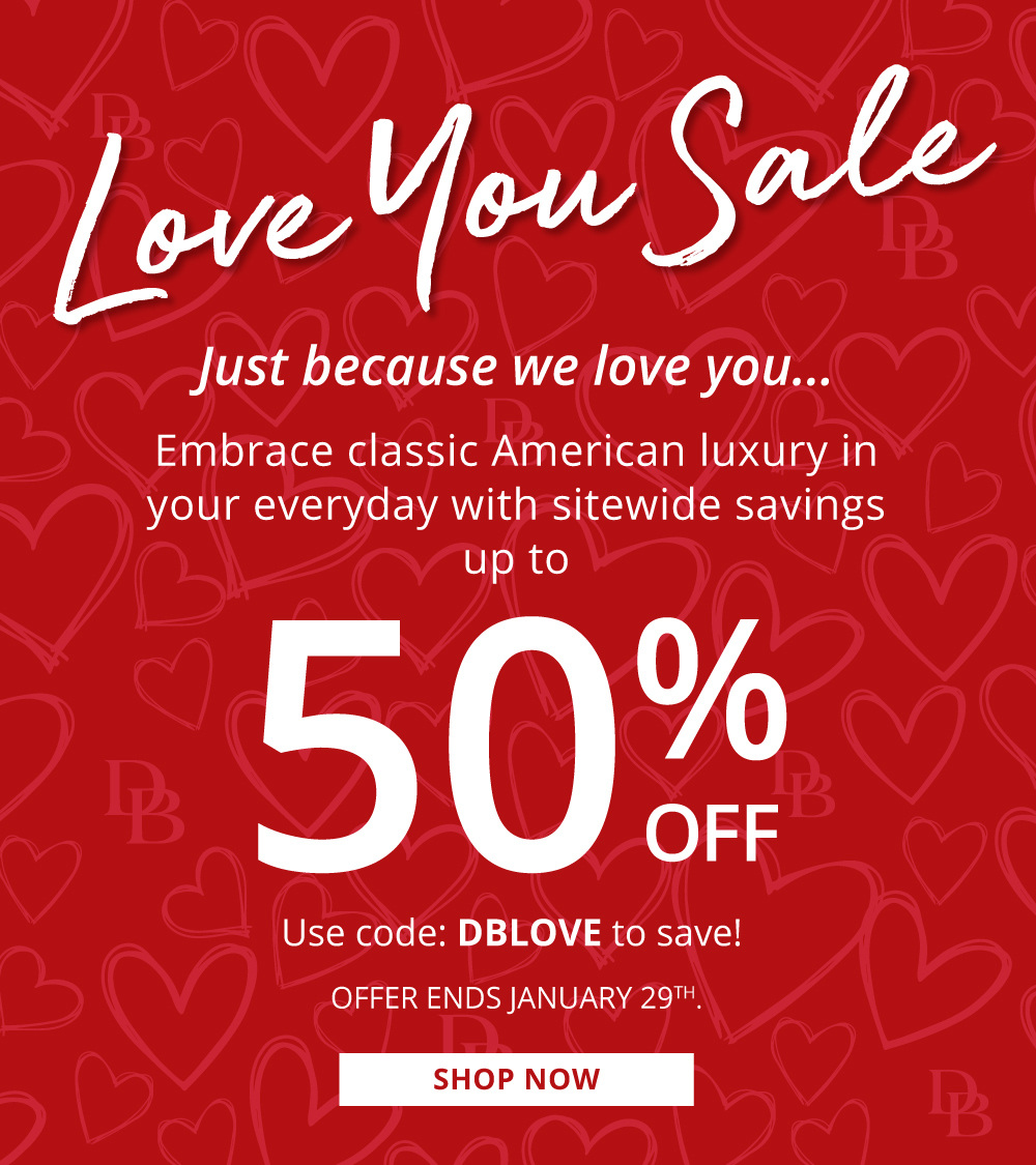 | Love You Sale offer ends January 29th, 2024 at 11:59pm PT. Offer available only on dooney.com with code DBLOVE. Discount is not applied towards shipping or sales tax. Discount cannot be applied towards our Dooney App Bag of the Month, Monogram Pendant Collection, Penrose Collection, Quincey Collection, Art Deco Collection, Pebble Turnlock Collection, Ostrich Turnlock Collection, Zebra Collection, Sorrento Collection, Torino Collection, Sweety Leather Collection, Maritime Collection, Belmar Collection, Pickleball Collection, Chevron Collection, Polka Dot Collection, Ruby Print Collections (Hydrangea Monogram, DB Stripe, Sullivan, Botanical, Tucker), select styles from our Wexford, Denison, Gretta, Saffiano, Pebble Grain, Florentine, MLB, NFL and Collegiate collections, Classic Lace Up, Phone Cases, Perfectly Priced styles, In Good Company (Roberta Pieri, and Old Newbury Crafters) brand products. Offer not valid on previously purchased merchandise. Cannot be combined with any other offer. Not redeemable for cash in part or full. |