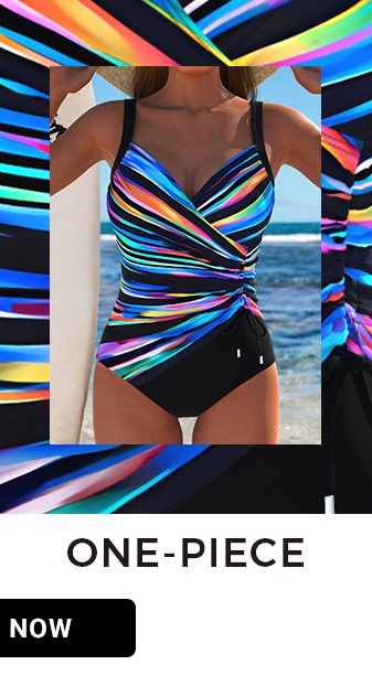 Surplice Feathers Print Light Pink Tankini SetCut Out Striped Navy Tankini SetChampagne Hot Stamping One Piece Swimwear